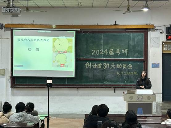 为做好2024届考研学子考前思想心理疏导、鼓舞动员工作,太阳集团tyc138于2023年11月23日召开了考研倒计时30天冲刺动员大会。学院领导、专职辅导员、学院部分考研学子参加了活动。