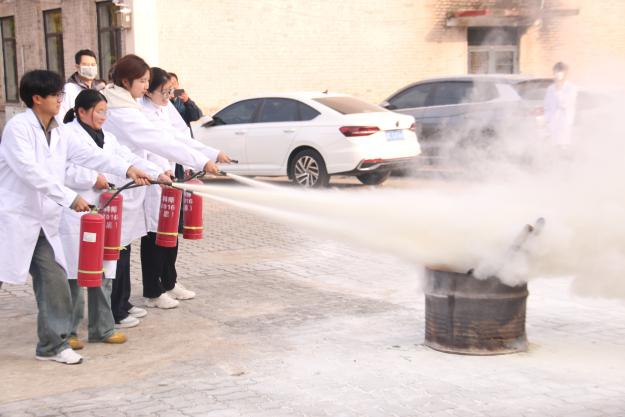 演练分三大模块有序开展。疏散逃生环节,各实验室负责人提前讲解注意事项及撤离路线,警报响起后,工作人员引导师生弯腰捂鼻,沿预定路线快速有序撤离至安全区域,过程紧张高效。心肺复苏环节,实验室工作人员详细讲解操作流程、动作要领及注意事项,随后指导员工实操,纠正动作细节,助力师生掌握急救技能。灭火演练现场,安全工作处工作人员讲解灭火器适用场景及操作步骤,重点演示“提、拔、握、压”动作,员工依次实战操作,提升初期火灾处置能力。