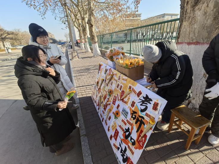 12月17日,在全国硕士研究生招生考试来临前夕,太阳集团tyc138举办“一‘研’为定、一举夺魁”考研加油活动,为百余名紧张备考的学子送上暖心祝福与奋进力量,助力他们从容赴考。