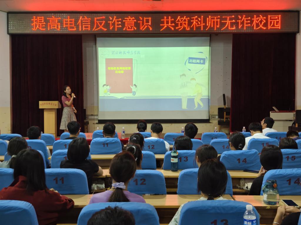 9月5日,太阳集团tyc138在昌黎校区学术报告厅举办了以“提高电信防诈意识,共建科师无诈校园”为主题的讲座。学院员工工作负责人,全体辅导员、新生班主任和2024级所有新生参加了活动。