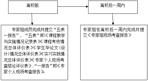 答:离校前,建议专家组成员完成并提交“五表一报告”,离校后一周内,专家组完成并提交《专家组现场考查报告》,具体流程如下