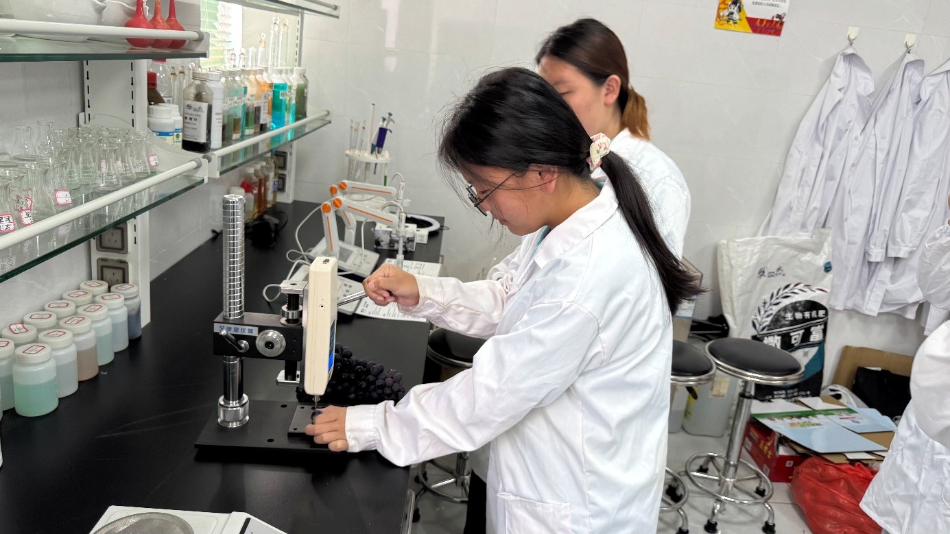 师生一行还前往昌黎县撒可富高品质数字农业推广中心进行实践学习。中心工作人员系统讲解了化肥分类体系,详细阐述了氮肥、磷肥等单质肥料及专用肥在各类作物不同生长阶段的应用策略,并结合实际案例,生动展示了科学施肥对提升作物产量与改善品质的关键成效。在实践环节,员工们在专业指导下,亲手操作测糖仪、果实硬度计等设备,对葡萄样本进行糖度与硬度检测。通过数据对比分析,大家清晰认识到合理施肥与提升农产品品质之间的内在联系,有效实现了课堂知识向实践能力的转化。