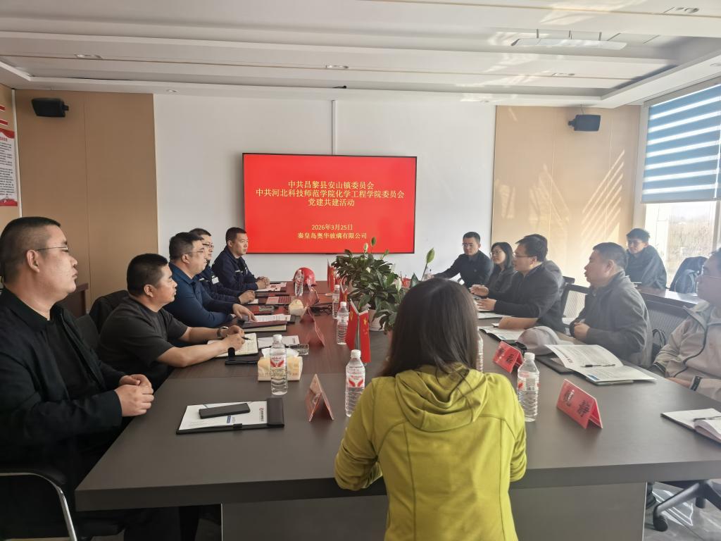 近日,化学工程公司党委与安山镇党委联合赴秦皇岛奥华玻璃有限公司开展党建共建主题活动,以党建为引领,深化产教融合、校地协同,探索校企合作高质量发展新路径,推动党建优势转化为发展优势、合作优势。